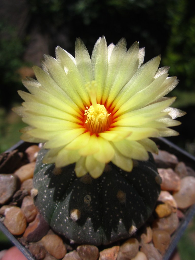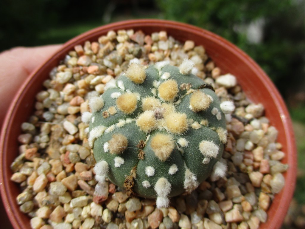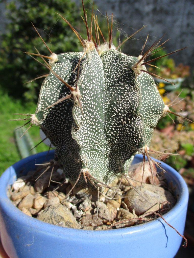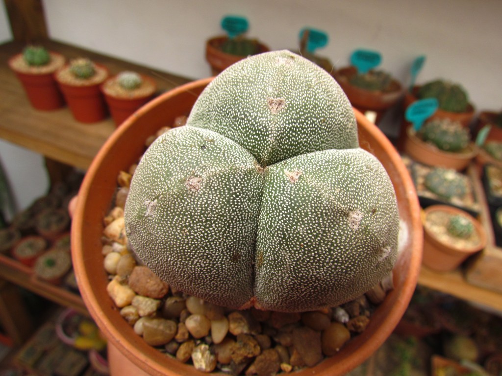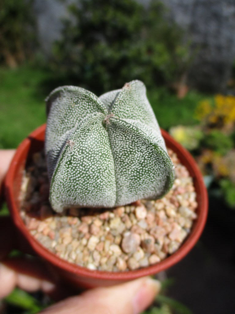 Ya tenemos una buena idea de como preparar el sustrato y de como y cuando regar nuestros cactus. Entonces podemos empezar a interiorizarnos en conocer los cactus que conforman nuestra colección. Me gustaría empezar hablándoles sobre los Astrophytum, es un género que gusta mucho por sus formas geométricas y sin temor a equivocarme creo que todo principiante por lo menos tiene uno. El primer astrophytum que compramos, fue de la especie asterias, el preferido de mi hija, sin experiencia alguna con los cactus se lo ubiqué en un lugar soleado y se lo quemé. Ha sido tanta la recriminación que me ha hecho por la quemazón y posterior muerte de su asterias que me ha creado un sentimiento de culpa enorme, así que para reivindicarme, cada vez que encuentro A. asterias de buen tamaño se los compro.