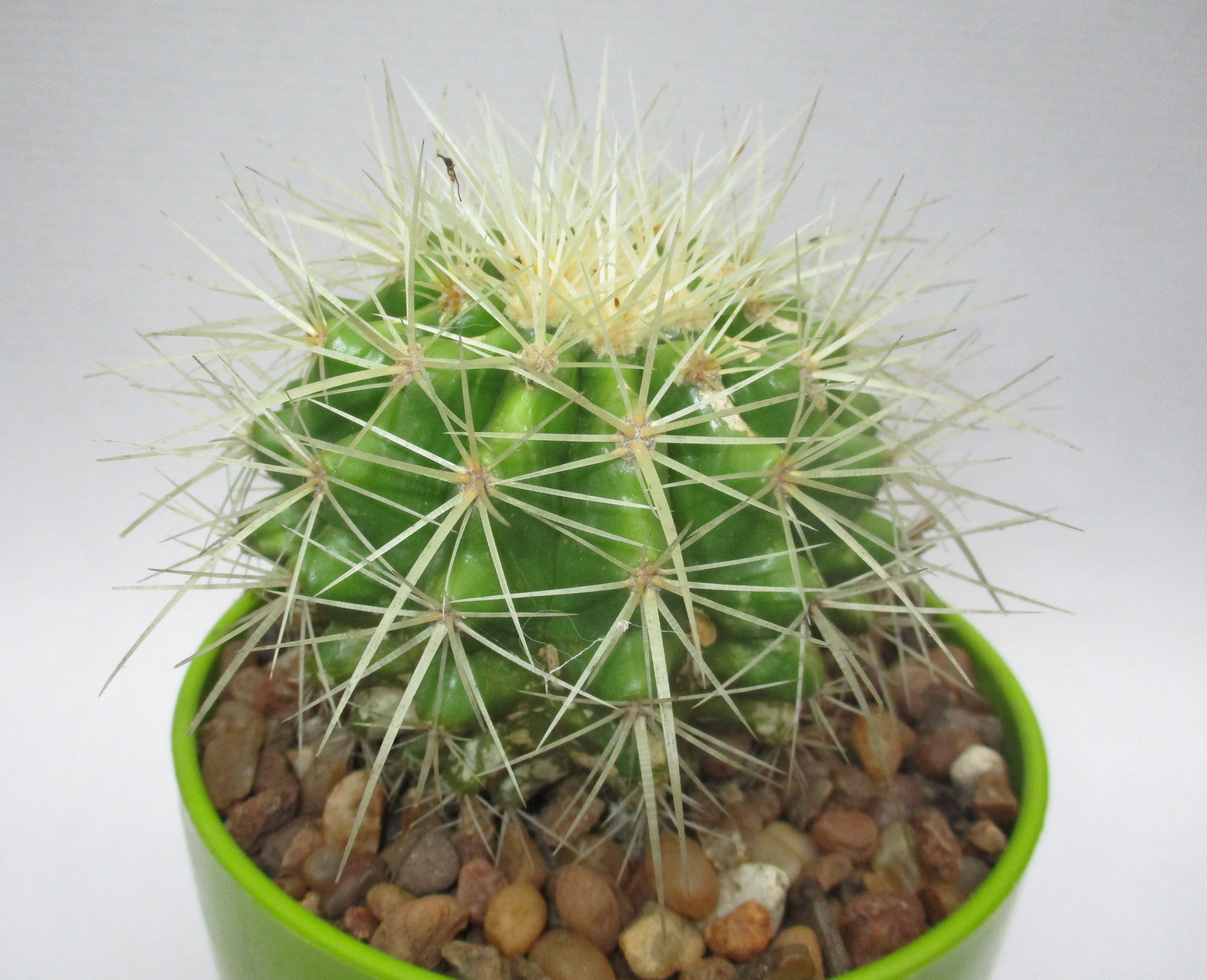 Conocido como cactus barril, asiento de suegra, es un cactus muy popular en las colecciones privadas pero muy raro en hábitat y en peligro de extinción. Es oriundo de México. Es un cactus llamativo por ser una pelota gigante ( obvio esto sucede con el paso del tiempo) y no por sus flores. En nuestras colecciones siempre hay por lo menos un E.grusonii, es un clásico. Crece muy lentamente. Las flores son muy pequeñas de color amarillo.Se puede mantener en maceta sin darnos problema alguno, siempre contando con muy buen drenaje.El riego es abundante en verano y la exposición al sol puede ser total, pero en una situación de semi sombra está bien. Es bueno cambiarle el sustrato cada dos años como renovación. En mi colección fue uno de los primeros cactus, lo compró mi hija sin saber que era lo que compraba. Lo cuidé mucho en los primeros tiempos y se me deformó por falta de luz, las espinas del ápice en vez de alargarse quedaron muy cortitas y perdieron el color amarillo. Cuando logré el segundo echinocactus grusonii gracias a un intercambio, lo traté de forma muy distinta al primero. O sea, lo adapté al sol para mantenerle la forma esférica y sus espinas características.