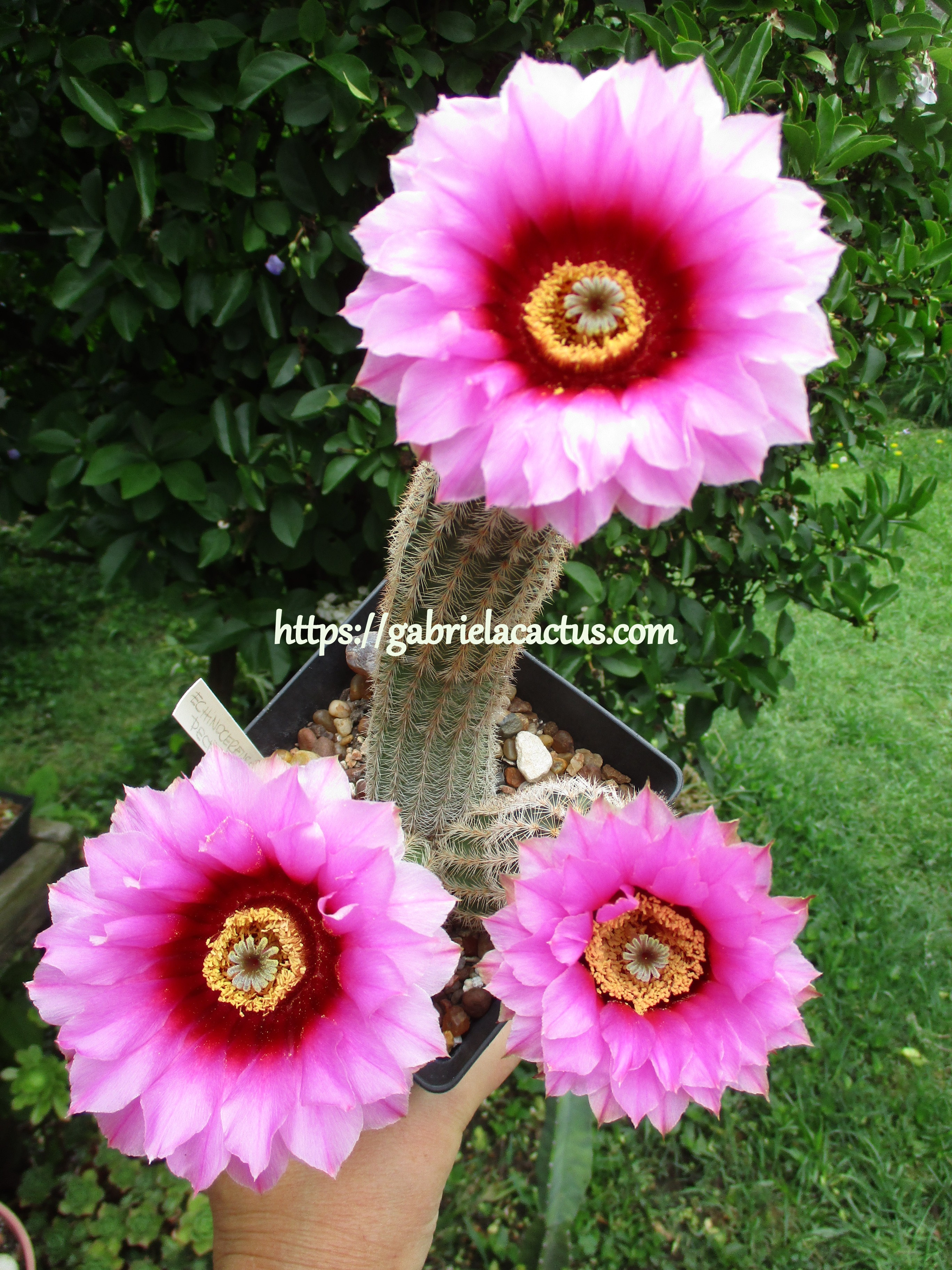 Son grandes, diurnas y duran poco más de un día. Es originario de México y EEUU. Es muy fácil de mantener en maceta porque no tiene grandes requerimientos. El sustrato puede ser el básico para cualquier cactus, pero también puedes hacerlo un poco más mineral, le vendría muy bien. No necesita de mucho riego para desarrollarse correctamente. La exposición al sol debe de ser total, tolera tanto el sol, como el frío a bajas temperaturas. En la temporada de otoño / invierno conviene mantenerlo seco para que en la primavera florezca. No he tenido problemas con las plagas en esta especie en particular, pero si en otros echinocereus que han sido vulnerables a la cochinilla y a la arañuela roja. Teniendo en cuenta inspeccionar nuestros cactus cada poco tiempo, estas enfermedades se contrarrestan fácilmente. Mi hija y yo lo descubrimos y lo añadimos tempranamente a nuestra colección.