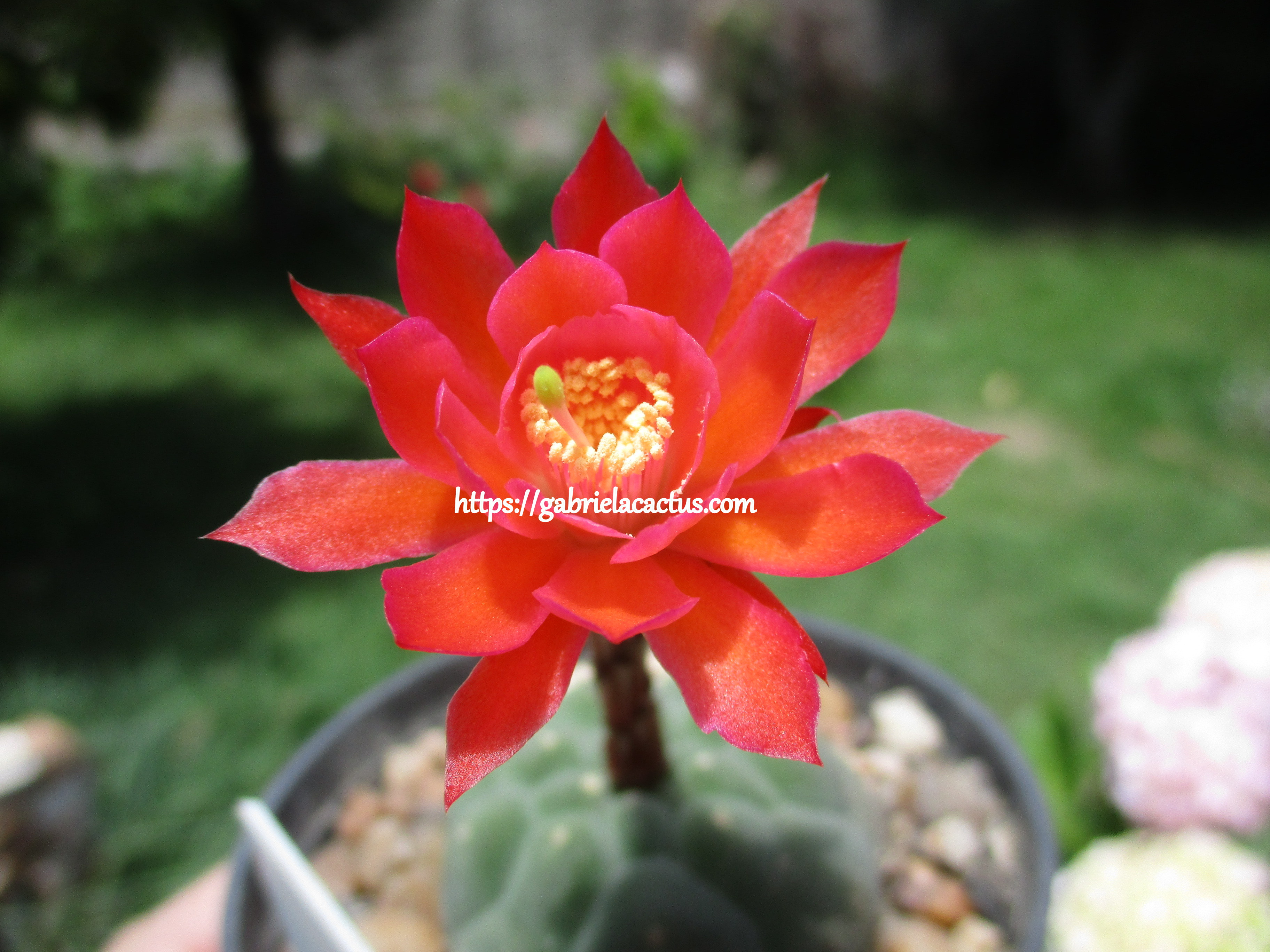 Los pimpollos son vellosos de color marrón o beige, que en el proceso va desarrollando un tubo floral también velloso, donde abrirá la flor que es de color rojo o rojo-anaranjado y raramente blanco. La flor dura unos tres días abierta. Puede florecer varias veces en el correr de la primavera-verano. Es aconsejable un sustrato para cactus que drene muy bien, porque tiende a perder las raíces, cuando queda húmedo durante varios días. También ten en cuenta en renovarle el sustrato cada dos años. El riego se hace en la temporada de crecimiento. Siempre regar cuando ya nos hemos asegurado que el sustrato está seco. Ubica a tu Matucana en un lugar luminoso, caluroso, pero no al sol. Los cactus desprovistos de espinas, o con muy pocas como es el caso de la Matucana, se queman fácilmente expuestos al sol (como por ejemplo es el caso de muchos gymnocalycium, astrophytum asterias, lophophora). Cuento con varias Matucanas en mi colección. No todas han florecido, pero si la mayoría. Entre ellas, dos tienen flores blancas, muy vistosas y delicadas.
