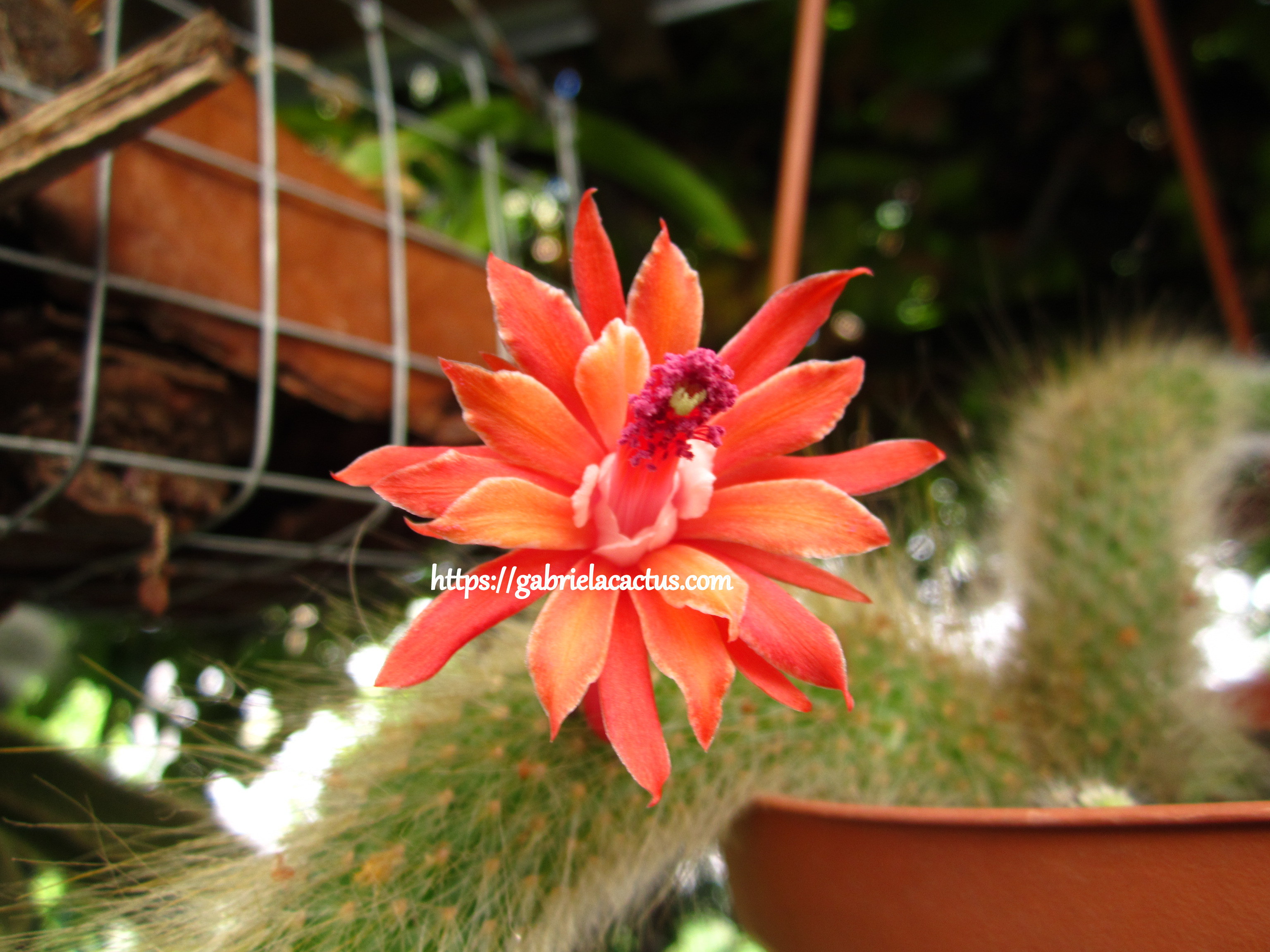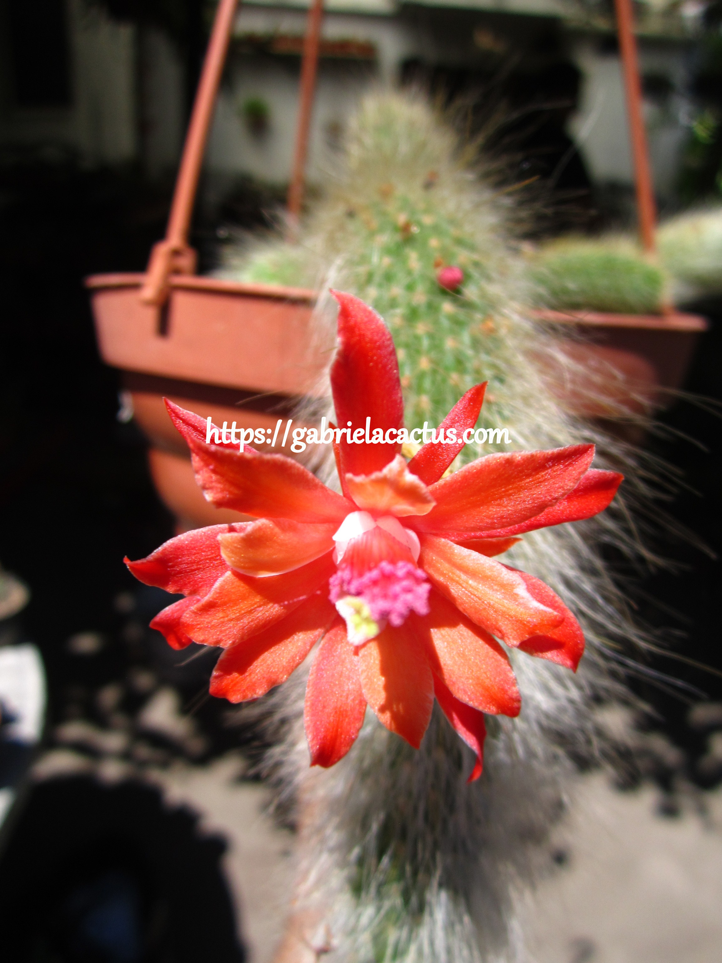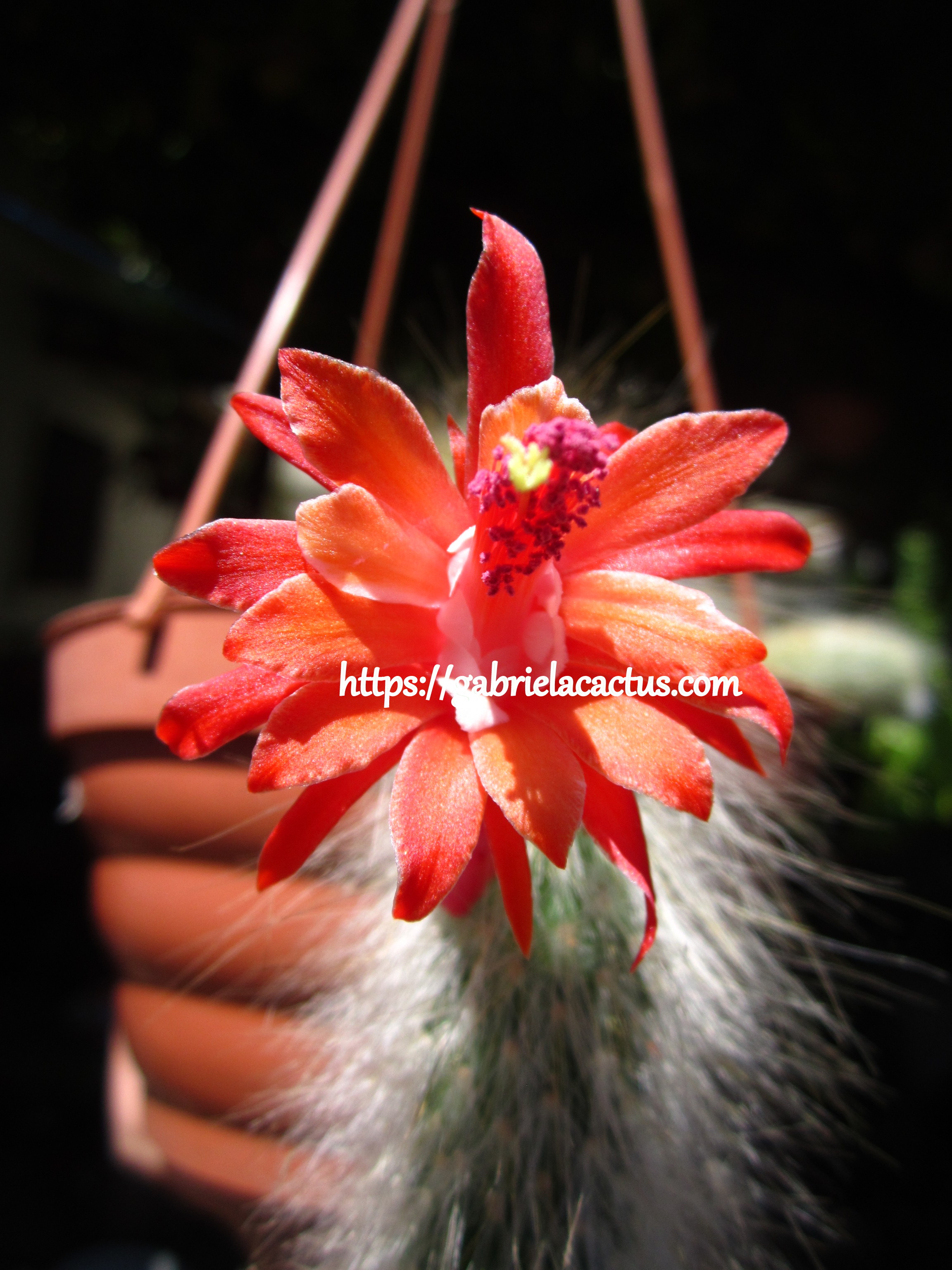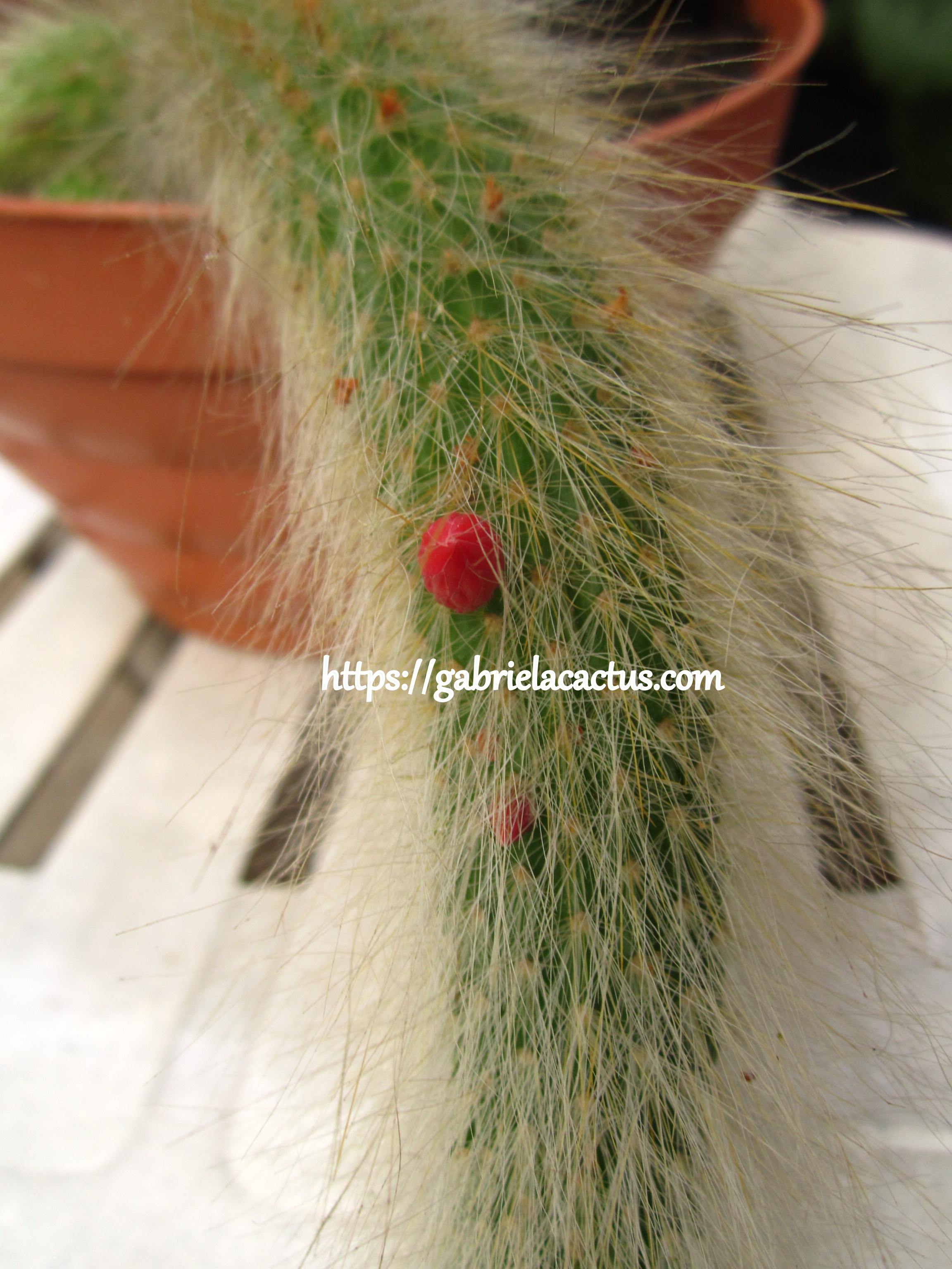 Son de color rojo, brillante. Este es un cactus que es de fácil mantenimiento. El sustrato ideal sería imitar el sustrato de su hábitat. Así que un mantillo de hoja más arena gruesa de río, perlita y algo de tierra estaría muy bien. El agregado de arena gruesa y perlita, favorece que el agua de riego drene rápidamente. Tienes que ubicar a tu «cola de mono»en un lugar muy luminoso,pero no directamente al sol.